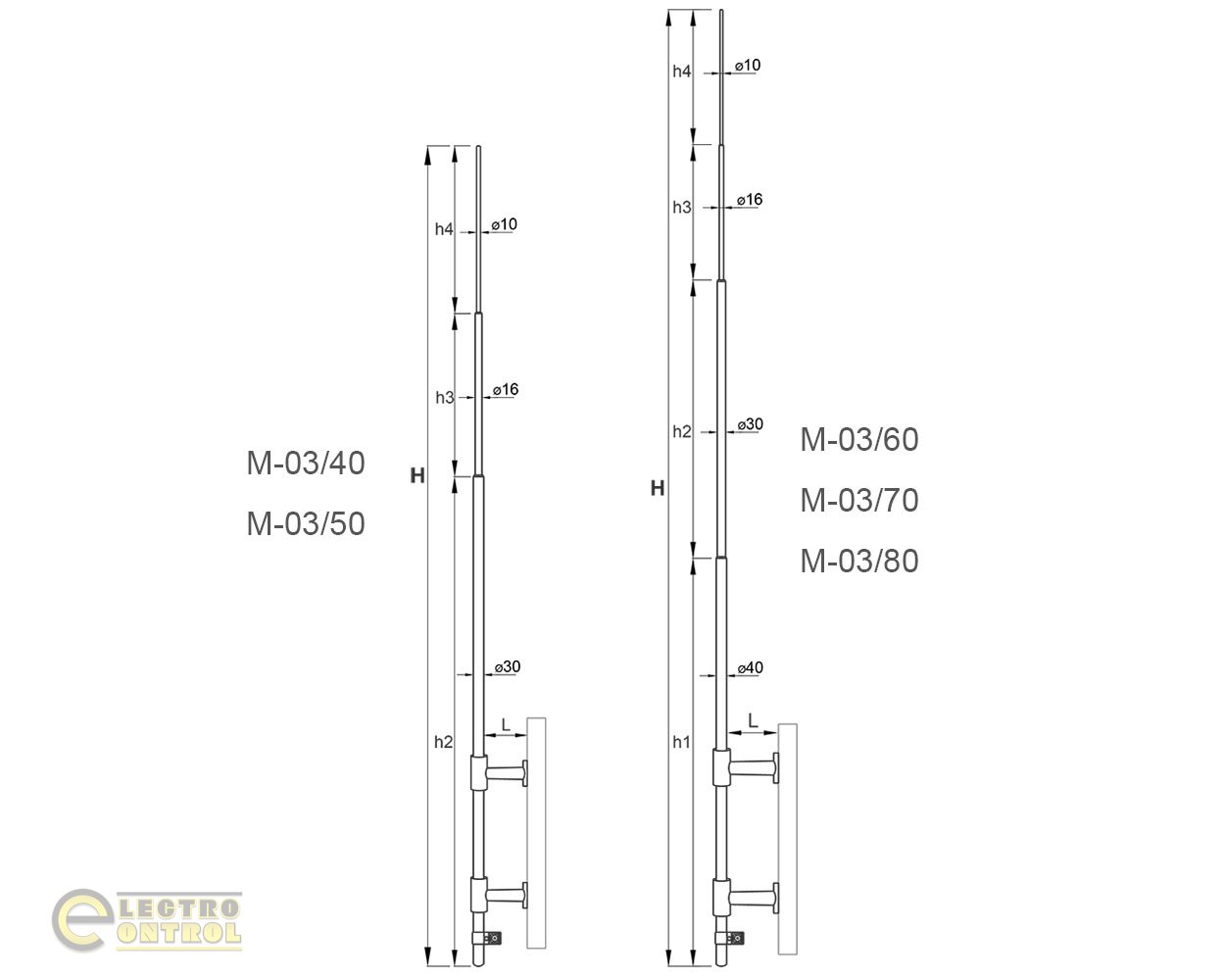 Щогла блискавкоприймача з боковим кріпленням 4 м M-03/40
