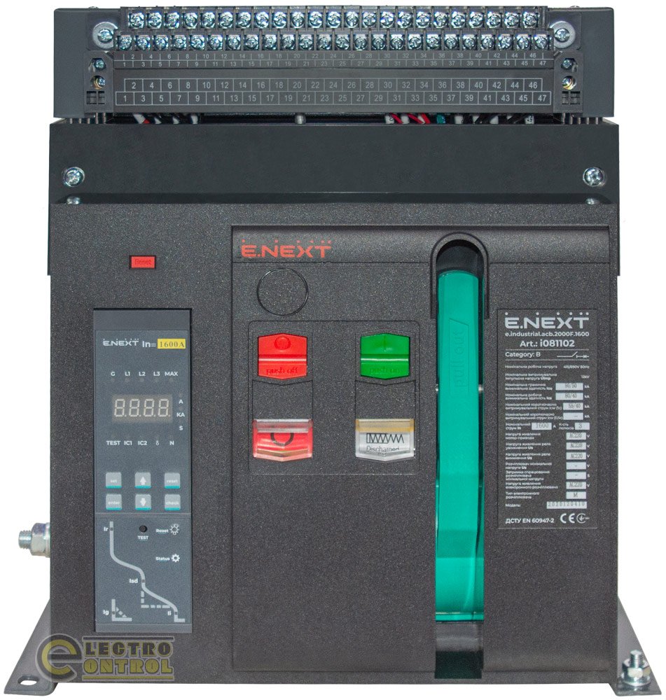 Повітряний автоматичний вимикач Enext e.industrial.acb.2000F.1600 стаціонарний 0.4кВ 3Р електронний розчіплювач мотор-привід та РН i081102