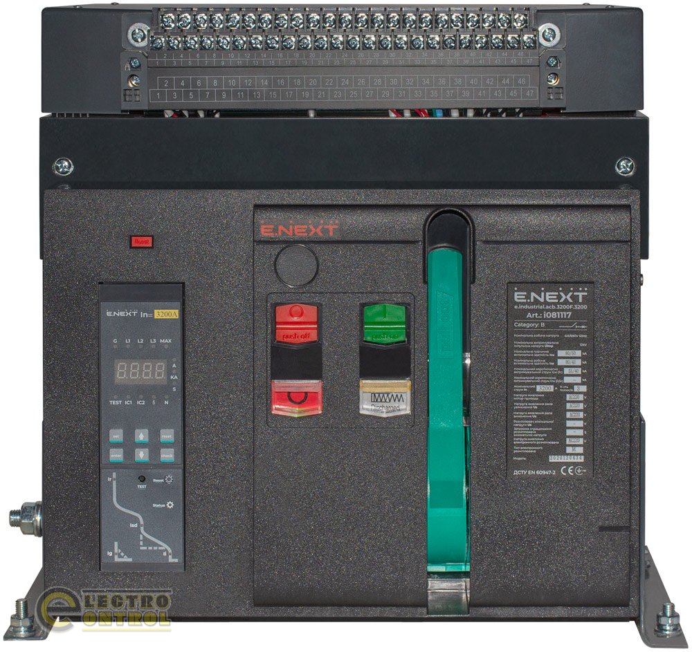 Повітряний автоматичний вимикач Enext e.industrial.acb.3200F.3200 стаціонарний 0.4кВ 3Р електронний розчіплювач мотор-привід та РН i081117