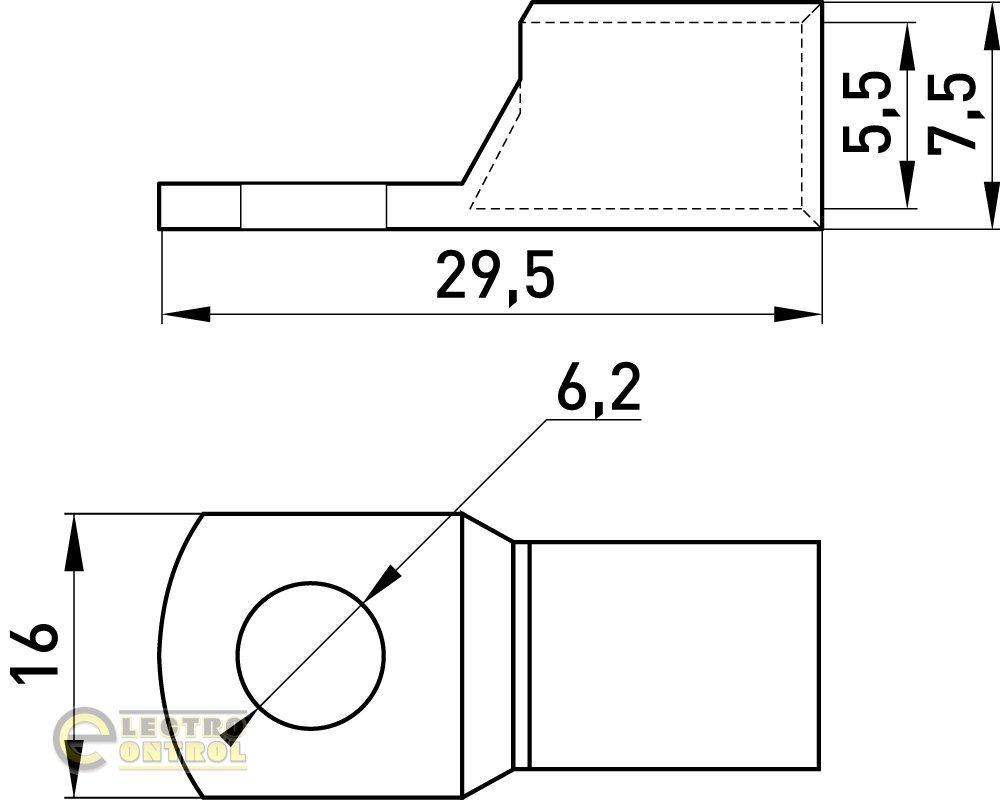 Мідний луджений кабельний наконечник Enext e.end.stand.c.16 D6.2 s19019