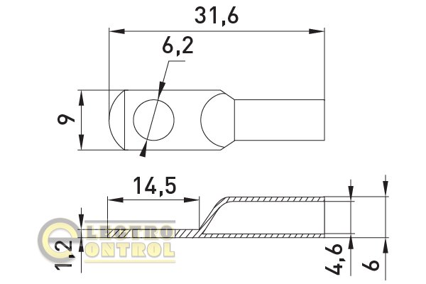 Мідний луджений кабельний наконечник Enext e.end.stand.jg.6 D6.2 s077001