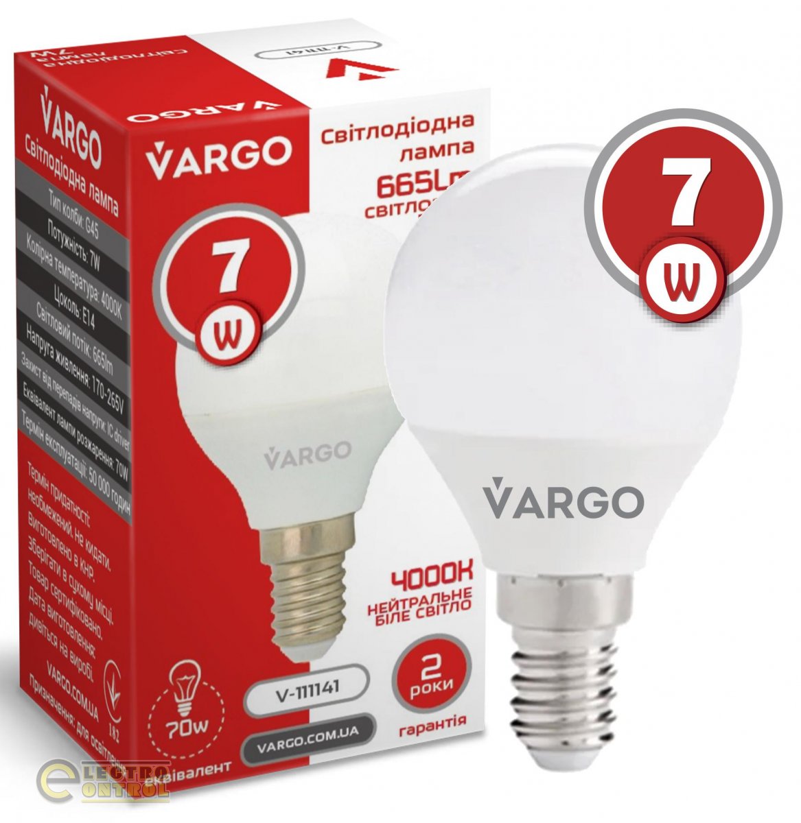 LED лампа VARGO G45 7W E14 665lm 4000K (V-111141)