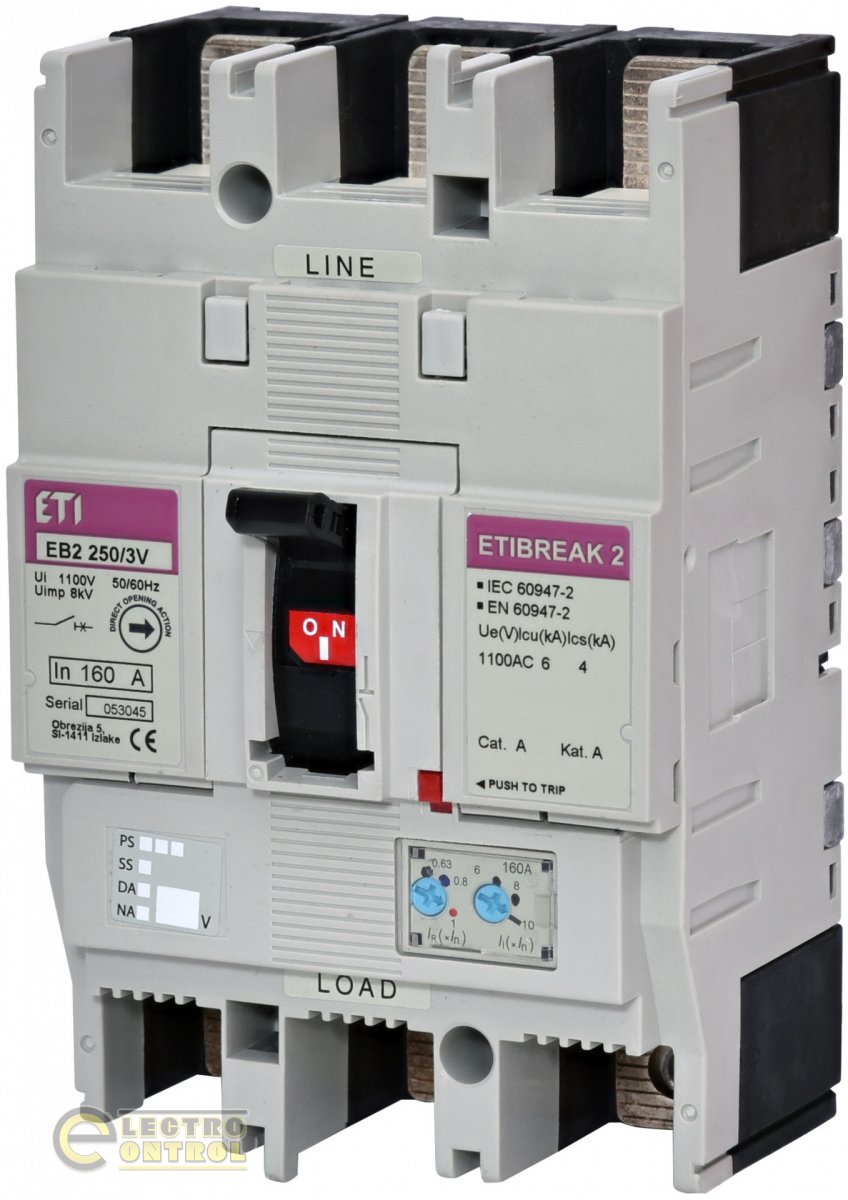 Автоматичний вимикач ETI EB2 250/3V 160A 0.63-1In/6-13In 1000V 3P 4671377