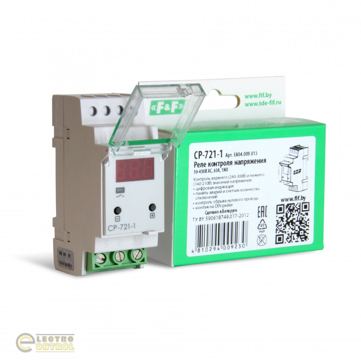 - Реле контролю напруги CP-721-1 призначене для захисту електрообладнання, електроприладів та іншого електронного обладнання від перевищеної або пониженої напруги, реєстрації граничних значень напруги, а також типу аварії, контролю величини напруги в однофазній мережі живлення змінного струму.