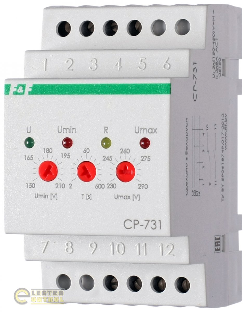 - Реле напруги CP-731 призначене для контролю рівня напруги мережі та захисту електричних пристроїв від небезпечного для них підвищення та зниження рівня напруги поза встановлені межі.