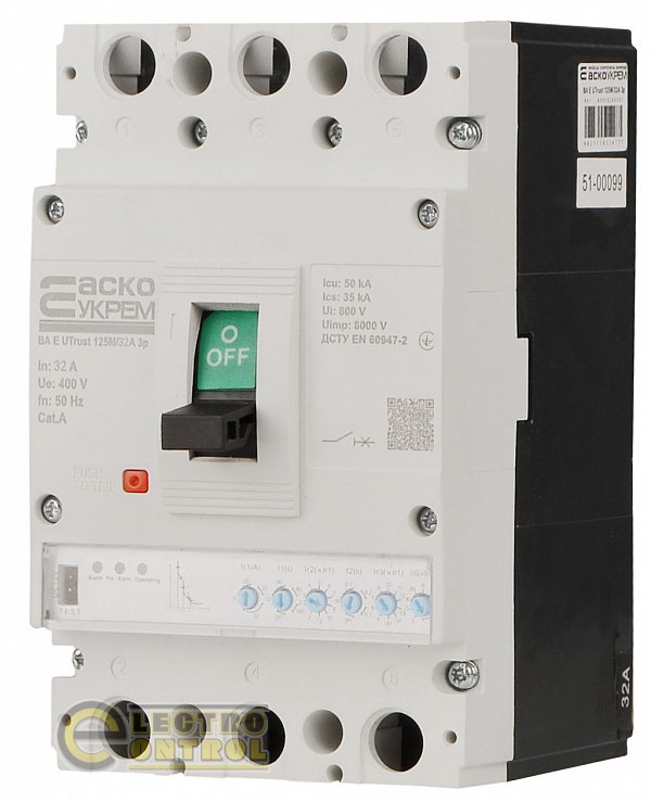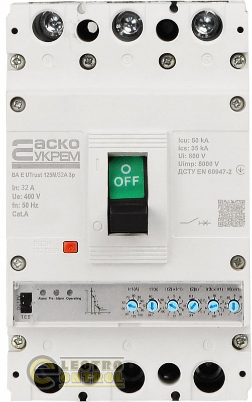 Силовий автоматичний вимикач з електронним розчіплювачем АСКО UTrust 125M/32А 3P A0010260001