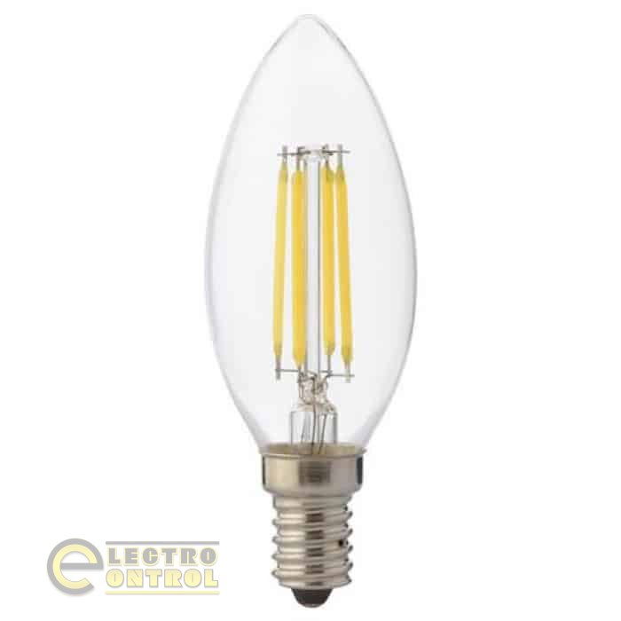 Бажаєте купити лампу? У Electrocontrol ми дбаємо, щоб кожен знайшов собі освітлення до вподоби. Наш асортимент включає широкий спектр лампочок за найкращою ціною. Незалежно від того, чи шукаєте ви світлодіодні LED лампи, люмінесцентні та галогенові лампи, ви можете знайти їх в Electrocontrol. Відповідне освітлення є не лише елементом інтер’єру будь-якої квартири, офісу чи комерційного приміщення. Світло завжди допомагає створити атмосферу затишку, підкреслити деталі та статус. Якщо ви бажаєте максимально правильно використати освітлення в кімнаті, скомбінуйте декілька видів ламп та світильників. Оберіть наприклад: люстри, точкове освітлення, LED лампи, світлодіодні стрічки, настільні лампи та елементи декору. Світлодіодна лампа FILAMENT CANDLE-6 - Філаментна LED лампа у формі полум’я свічки з типом колби С37. Filament — це світлодіодні лампи нового покоління, в яких світлодіоди нанесені на скляну підкладку, а не плату, і виглядають як нитки в лампах розжарювання. Саме такі світлодіоди і дають лампі високу енергоефективність і коефіцієнт корисної дії (ККД) схеми наближений до 100%25. Філаментна нитка має мале енергоспоживання, порівняно з іншими виробами на базі світлодіодів. Потужність цієї лампи – 6 Вт., що відповідає лампі розжарювання в 48 Вт. Герметична прозора колба наповнена газом для відведення тепла від світлодіодів, яке через її тонкі скляні стінки передається зовнішньому середовищу. Живлення на LED-нитки подається через невеликий драйвер в цоколі, який знижує напругу до робочого, а змінний струм перетворює в постійний. Це сприяє зменшенню пульсацій, які негативно впливають на зір. Цоколь лампи стандартний E14 з діаметром - 14 мм, так звані «міньйони» є – аналогом цоколя Е27, тільки з меншим діаметром контактного елементу. Завдяки прозорій колбі та особливій конструкції філаментної нитки, лампа забезпечує широкий кут розсіювання світла – 360 градусів і рівномірно освітлює навколишній простір. Вінтажні LED ЛАМПИ ПІДХОДЯТЬ ДЛЯ СТВОРЕННЯ ІНТЕР'ЄРІВ У РЕТРО СТИЛІ ТА ІДЕАЛЬНІ ДЛЯ СВІТИЛЬНИКІВ У СТИЛІ ЛОФТ. Купити світлодіодну лампу FILAMENT CANDLE рекомендуємо для загального й місцевого освітлення інтер'єрів. Їх також ШИРОКО ВИКОРИСТОВУЮТЬ ДЛЯ ДЕКОРУВАННЯ РЕСТОРАНІВ, МАГАЗИНІВ, БАРІВ, КАФЕ. Філамент відмінно поєднується з кришталевими світильниками й люстрами, люстрами-свічками, відкритими й прозорими плафонами, бра та іншими моделями в класичному й старовинному стилі. А також у світильниках, що вбудовані в підвісні або натяжні стелі та призначені для підсвічування певних об’єктів або площин. Скляна колба не нагрівається до високих температур, тому філаментні лампи можна встановлювати біля натяжних або гіпсокартонних стель та інших поверхонь, які не допускають сильного нагріву. Ця LED лампа з рівним комфортним для очей світлом, без пульсацій, що в свою чергу не призводить до втоми і не погіршує емоційний стан. Вбудовані світлодіоди генерують приємне та затишне, тепле світіння з колірною 2700К. Його поріг приблизно відповідає вечірньому сонцю та асоціюється із закінченням робочого дня, приємною атмосферою вечірнього будинку і близькості відпочинку. Дизайнери рекомендують вибирати тепле світло в кімнати, де люди розслабляються, відпочивають після важкого дня. Де сім'я проводить вечір, приймає їжу і так далі, тому що воно здатне створити атмосферу невимушено