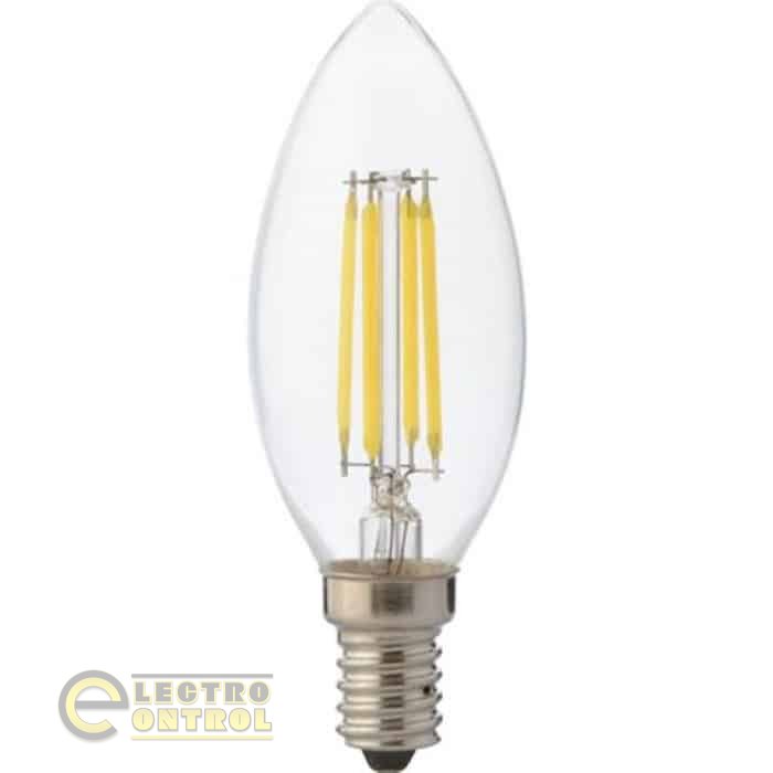 Бажаєте купити лампу? У Electrocontrol ми дбаємо, щоб кожен знайшов собі освітлення до вподоби. Наш асортимент включає широкий спектр лампочок за найкращою ціною. Незалежно від того, чи шукаєте ви світлодіодні LED лампи, люмінесцентні та галогенові лампи, ви можете знайти їх в Electrocontrol. Відповідне освітлення є не лише елементом інтер’єру будь-якої квартири, офісу чи комерційного приміщення. Світло завжди допомагає створити атмосферу затишку, підкреслити деталі та статус. Якщо ви бажаєте максимально правильно використати освітлення в кімнаті, скомбінуйте декілька видів ламп та світильників. Оберіть наприклад: люстри, точкове освітлення, LED лампи, світлодіодні стрічки, настільні лампи та елементи декору. Світлодіодна лампа FILAMENT CANDLE-4 - Філаментна LED лампа у формі полум’я свічки з типом колби С37. Filament — це світлодіодні лампи нового покоління, в яких світлодіоди нанесені на скляну підкладку, а не плату, і виглядають як нитки в лампах розжарювання. Саме такі світлодіоди і дають лампі високу енергоефективність і коефіцієнт корисної дії (ККД) схеми наближений до 100%25. Філаментна нитка має мале енергоспоживання, порівняно з іншими виробами на базі світлодіодів. Потужність цієї лампи – 4 Вт., що відповідає лампі розжарювання в 32 Вт. Герметична прозора колба наповнена газом для відведення тепла від світлодіодів, яке через її тонкі скляні стінки передається зовнішньому середовищу. Живлення на LED-нитки подається через невеликий драйвер в цоколі, який знижує напругу до робочого, а змінний струм перетворює в постійний. Це сприяє зменшенню пульсацій, які негативно впливають на зір. Цоколь лампи стандартний E14 з діаметром - 14 мм, так звані «міньйони» є – аналогом цоколя Е27, тільки з меншим діаметром контактного елементу. Завдяки прозорій колбі та особливій конструкції філаментної нитки, лампа забезпечує широкий кут розсіювання світла – 360 градусів і рівномірно освітлює навколишній простір. Вінтажні LED ЛАМПИ ПІДХОДЯТЬ ДЛЯ СТВОРЕННЯ ІНТЕР'ЄРІВ У РЕТРО СТИЛІ ТА ІДЕАЛЬНІ ДЛЯ СВІТИЛЬНИКІВ У СТИЛІ ЛОФТ. Купити світлодіодну лампу FILAMENT CANDLE рекомендуємо для загального й місцевого освітлення інтер'єрів. Їх також ШИРОКО ВИКОРИСТОВУЮТЬ ДЛЯ ДЕКОРУВАННЯ РЕСТОРАНІВ, МАГАЗИНІВ, БАРІВ, КАФЕ. Філамент відмінно поєднується з кришталевими світильниками й люстрами, люстрами-свічками, відкритими й прозорими плафонами, бра та іншими моделями в класичному й старовинному стилі. А також у світильниках, що вбудовані в підвісні або натяжні стелі та призначені для підсвічування певних об’єктів або площин. Скляна колба не нагрівається до високих температур, тому філаментні лампи можна встановлювати біля натяжних або гіпсокартонних стель та інших поверхонь, які не допускають сильного нагріву. Ця LED лампа з рівним комфортним для очей світлом, без пульсацій, що в свою чергу не призводить до втоми і не погіршує емоційний стан. Вбудовані світлодіоди генерують приємне та затишне, тепле світіння з колірною 2700К. Його поріг приблизно відповідає вечірньому сонцю та асоціюється із закінченням робочого дня, приємною атмосферою вечірнього будинку і близькості відпочинку. Дизайнери рекомендують вибирати тепле світло в кімнати, де люди розслабляються, відпочивають після важкого дня. Де сім'я проводить вечір, приймає їжу і так далі, тому що воно здатне створити атмосферу невимушено