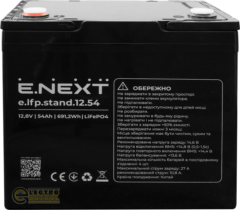 Акумуляторна батарея Enext e.lfp.stand.12.54 12.8V 54Ah LiFePO4 s078009