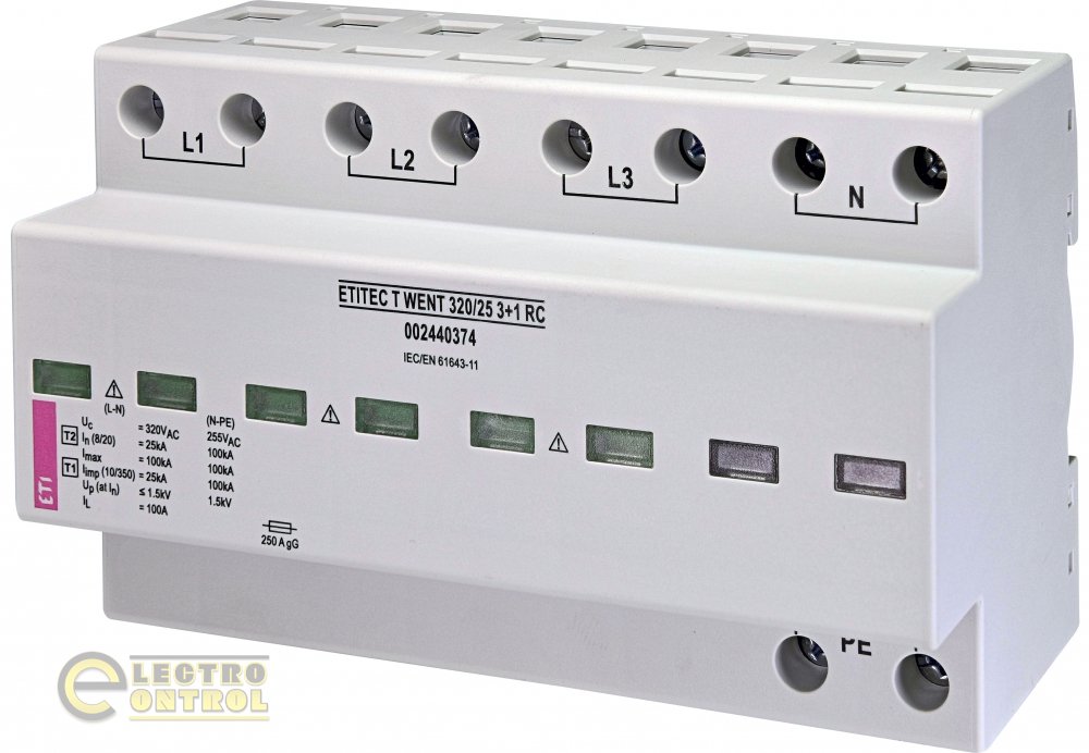 Обмежувач перенапруги ETI ETITEC T WENT 320/25 3+1 8p TT RC 2440374