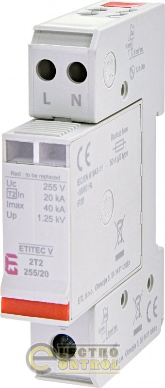 Обмежувач перенапруги ETI ETITEC V 2T2 255/20 1+1 2442942