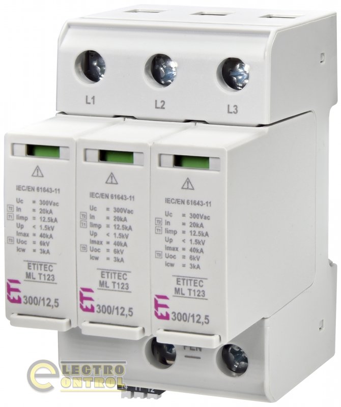Обмежувач перенапруги ETI ETITEC ML T123 300/12.5 3+0 3p TNC RC 2440666