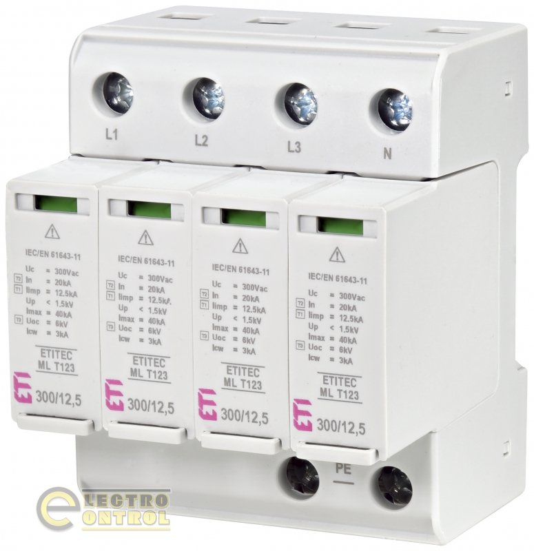 Обмежувач перенапруги ETI ETITEC ML T123 300/12.5 4+0 4p TNC-S 2440667