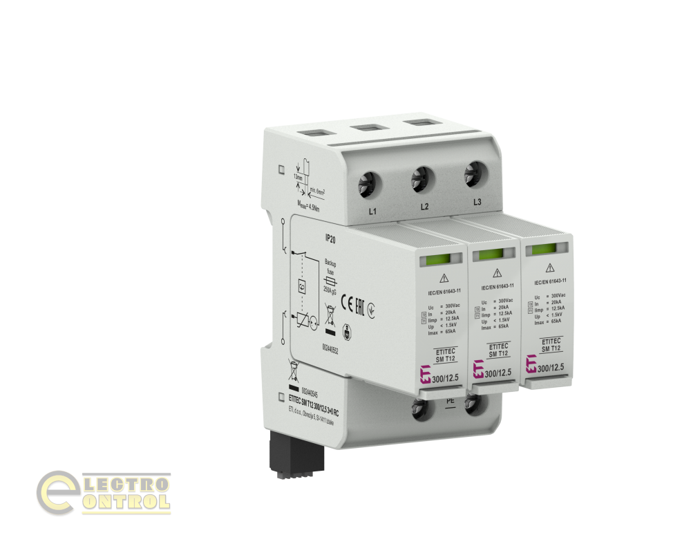 Обмежувач перенапруги ETI ETITEC SM T12 300/12.5 3+0 3p TNC RC 2440545