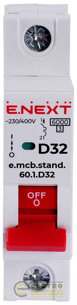 Модульний автоматичний вимикач Enext s026113 e.mcb.stand.60.1.D32 1р 32А D 6кА