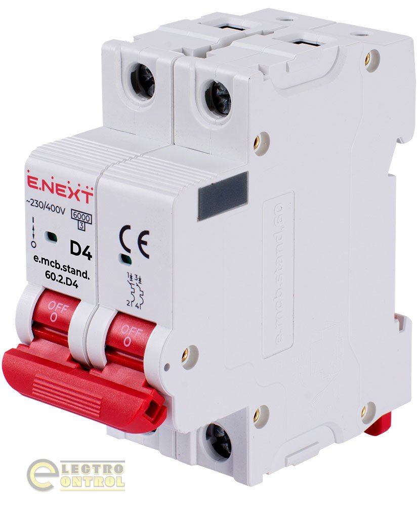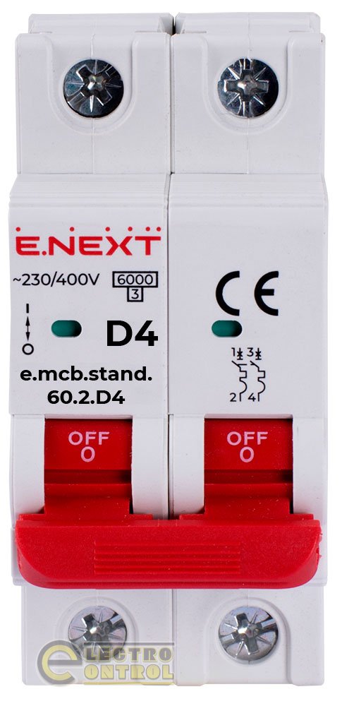 Модульний автоматичний вимикач Enext s026120 e.mcb.stand.60.2.D4 2р 4А D 6кА