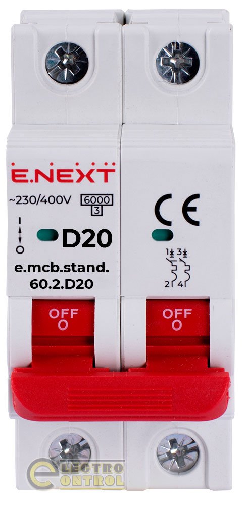 Модульний автоматичний вимикач Enext s026127 e.mcb.stand.60.2.D20 2р 20А D 6кА