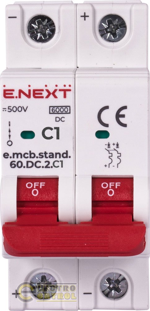 Модульний автоматичний вимикач Enext s081013 e.mcb.stand.60.DC.2.C1 2р 1А C 6кА DC