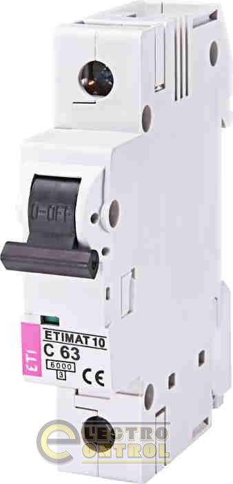 Серія автоматичних вимикачів із функцією захисту від струмів короткого замикання ETIMAT 10 1p C 63А призначена для використання в побутових і комунальних електромережах, а також у розподільних щитах, шафах управління тощо промислових споживачах невеликої потужності.