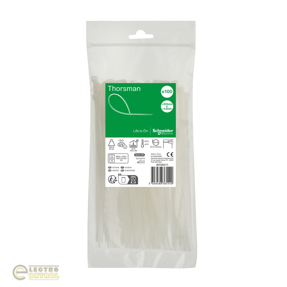 Хомут кабельний Thorsman IMT46411 200x4.8мм білий (100шт)