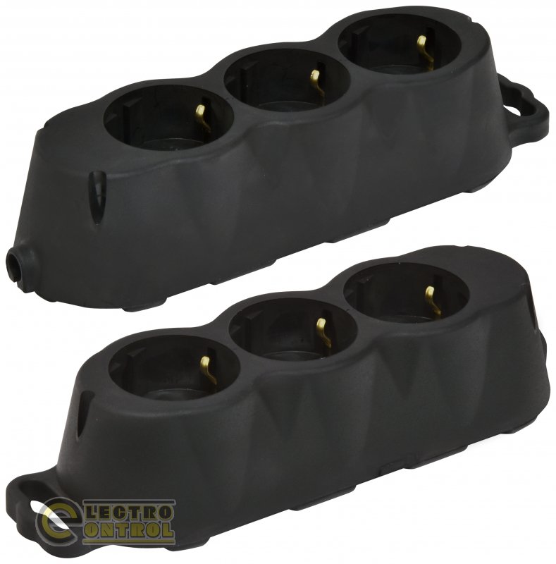Блок розеток ETI 4481010 тримісний ERS-3B 3x2Р+РЕ Schuko каучук IP20 чорний