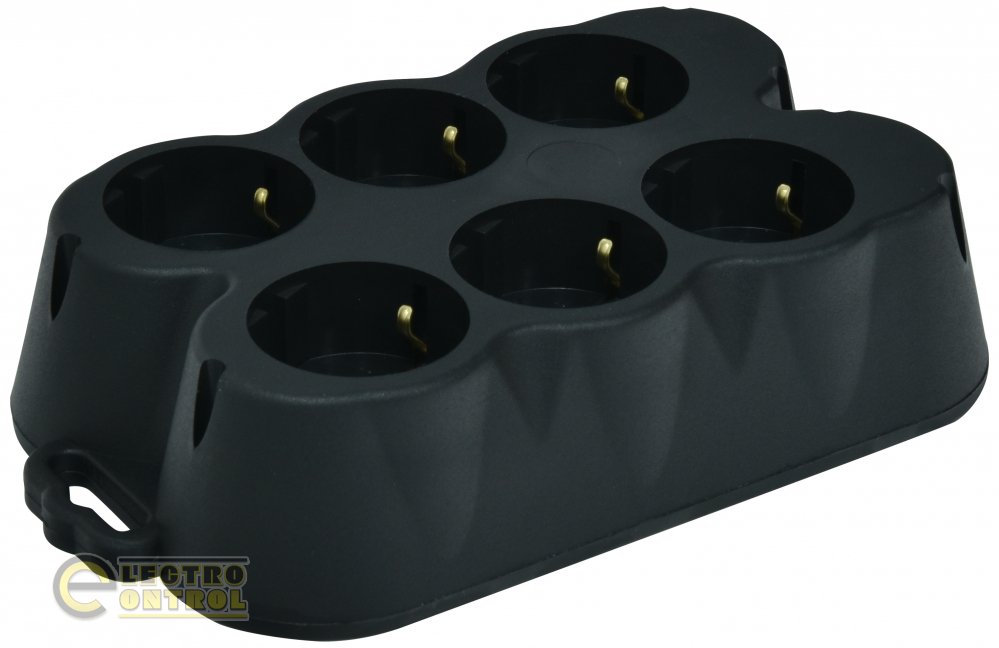 Блок розеток ETI 4481011 шестимісний ERS-6B 6x2Р+РЕ Schuko каучук IP20 чорний
