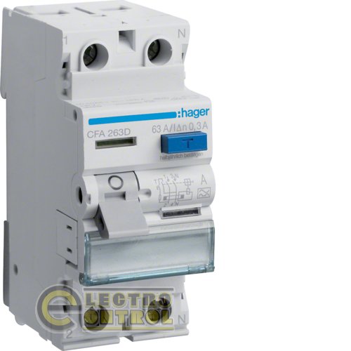 Пристрій захисного відключення (ПЗВ) Hager CFA263D 2P 6kA 63A 300mA A