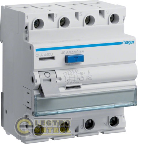 Пристрій захисного відключення (ПЗВ) Hager CFA440D 4P 6kA 40A 300mA A