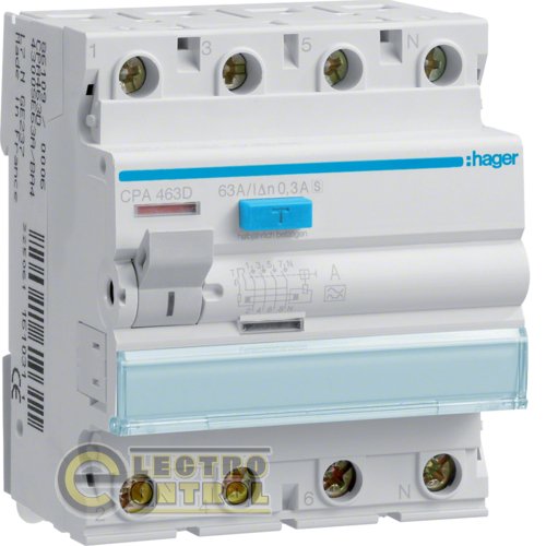Пристрій захисного відключення (ПЗВ) Hager CPA463D 4P 6kA 63A 300mA A S