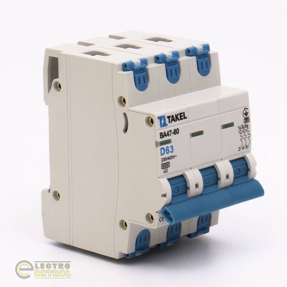 Автоматичний вимикач Takel 506741 ВА47-60 D 3Р 6кА 63А