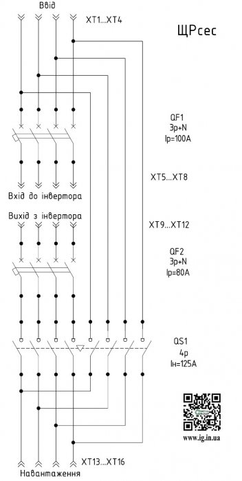 Схема щита захисту інвертора ЩЗІас-3ф-100А: