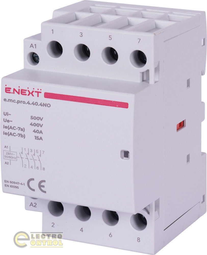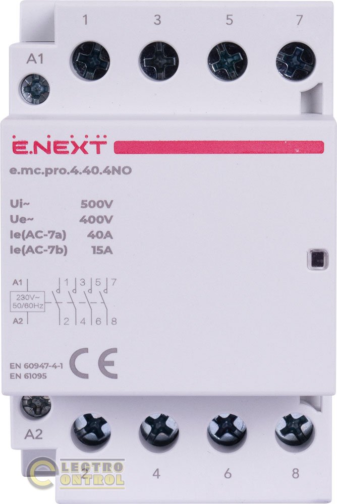 Модульний контактор Enext p005207 e.mc.pro.4.40.4NO 4р 40А 4NO 220В
