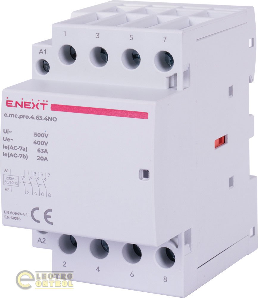 Модульний контактор Enext p005209 e.mc.pro.4.63.4NO 4р 63А 4NO 220В