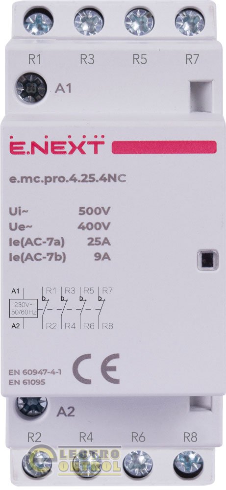 Модульний контактор Enext p005224 e.mc.pro.4.25.4NC 4р 25А 4NC 220В