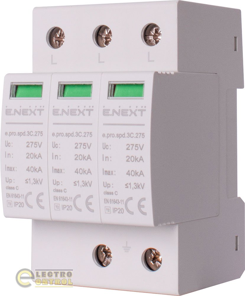 Пристрій для захисту від імпульсних перенапруг Enext p076007 e.pro.spd.3С.275 3P клас С