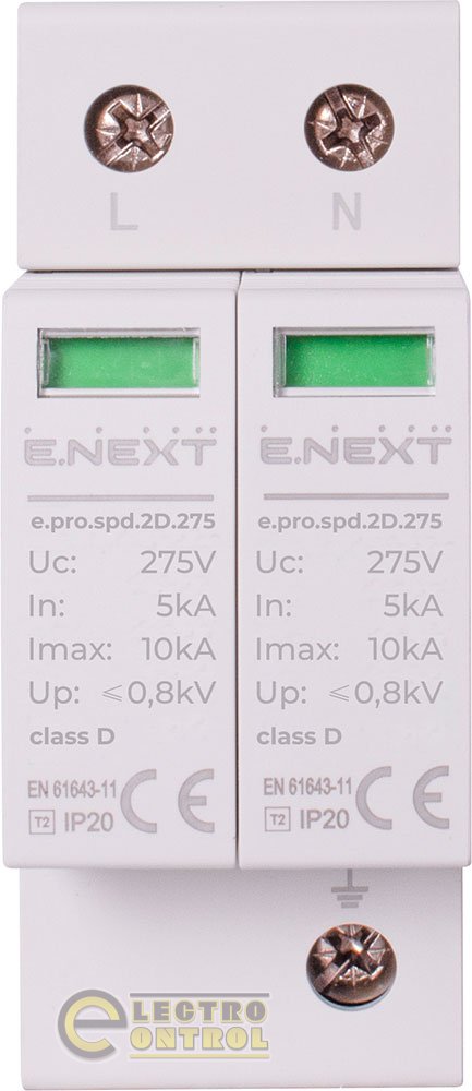 Пристрій для захисту від імпульсних перенапруг Enext p076010 e.pro.spd.2D.275 2P клас D