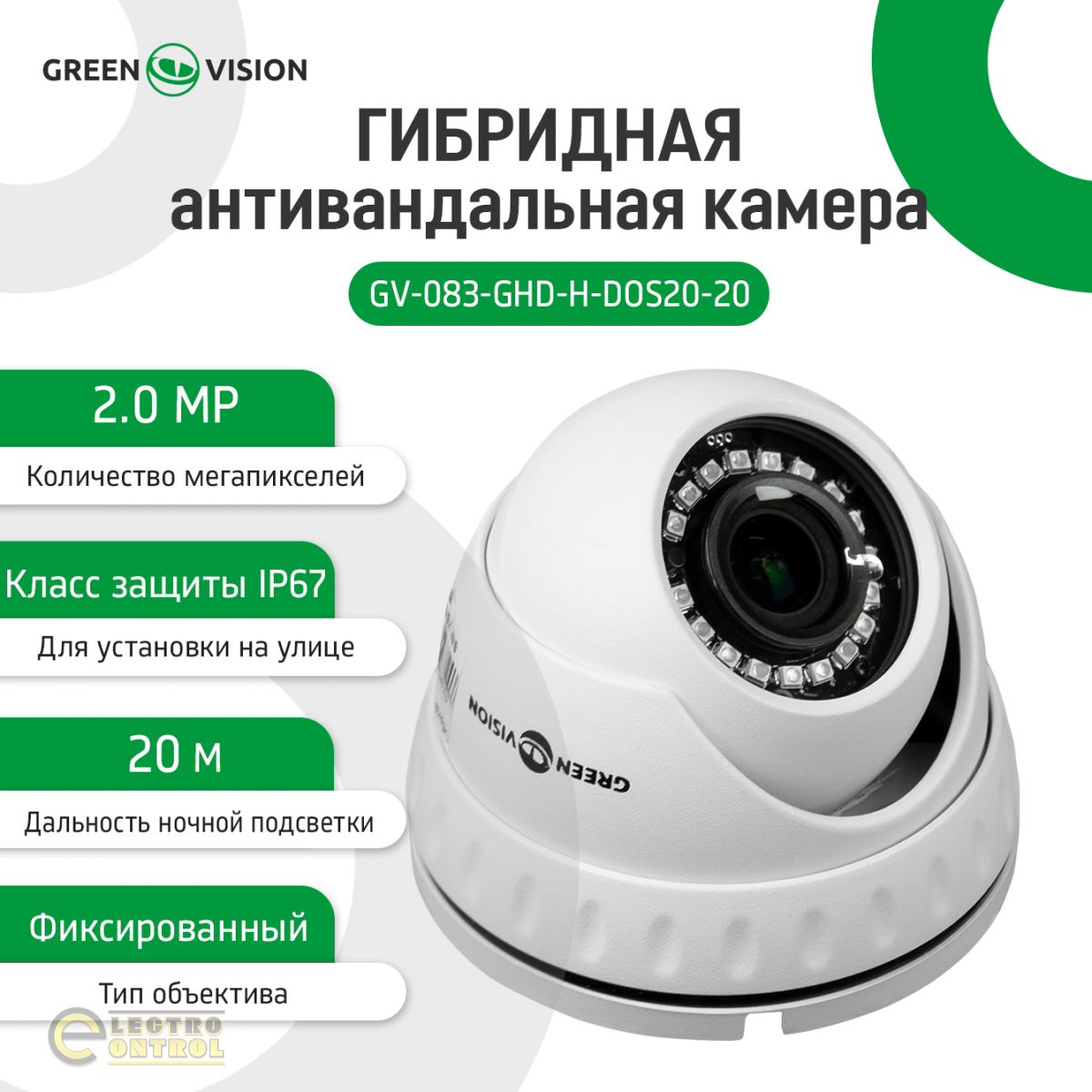 Гібридні системи відеоспостереження, в яких використовують камери GV-083-GHD-H-DOS20-20 1080Р (Объектив 160°), універсальні для різних сфер діяльності. Подібні системи відеоспостереження можна використовувати як для приміщень з великою площею (склади, виробничі цехи, великі супермаркети і т.д.), так і для установки на території дач, приватних будинків та інших будівель побутового та господарського призначення.