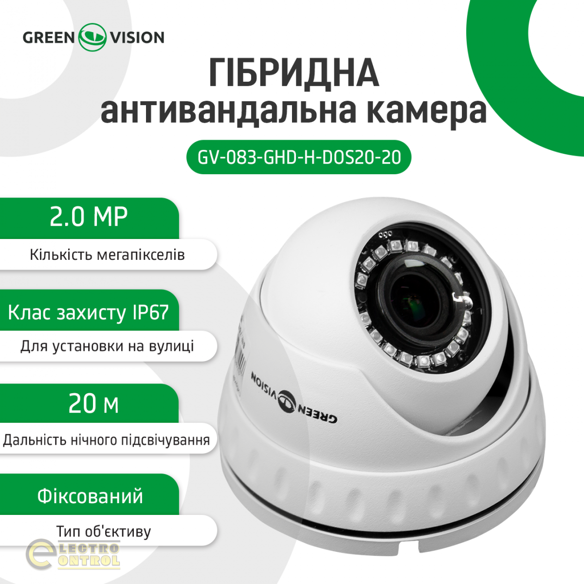 Гібридна антивандальна камера GV-083-GHD-H-DOS20-20 1080Р (Объектив 160°)