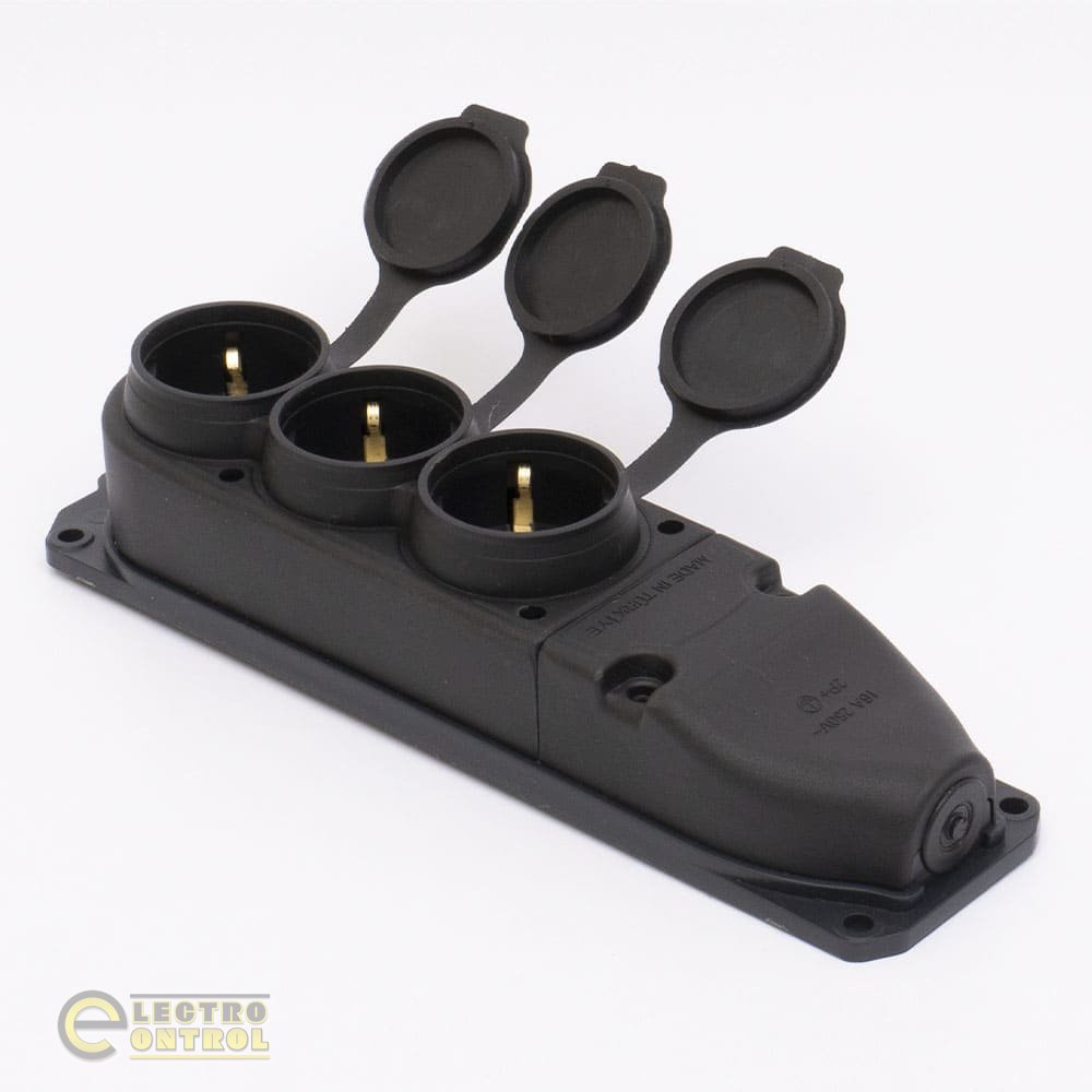 Розетка Takel 503362 каучукова тримісна RSB чорна 2Р+РЕ IP44