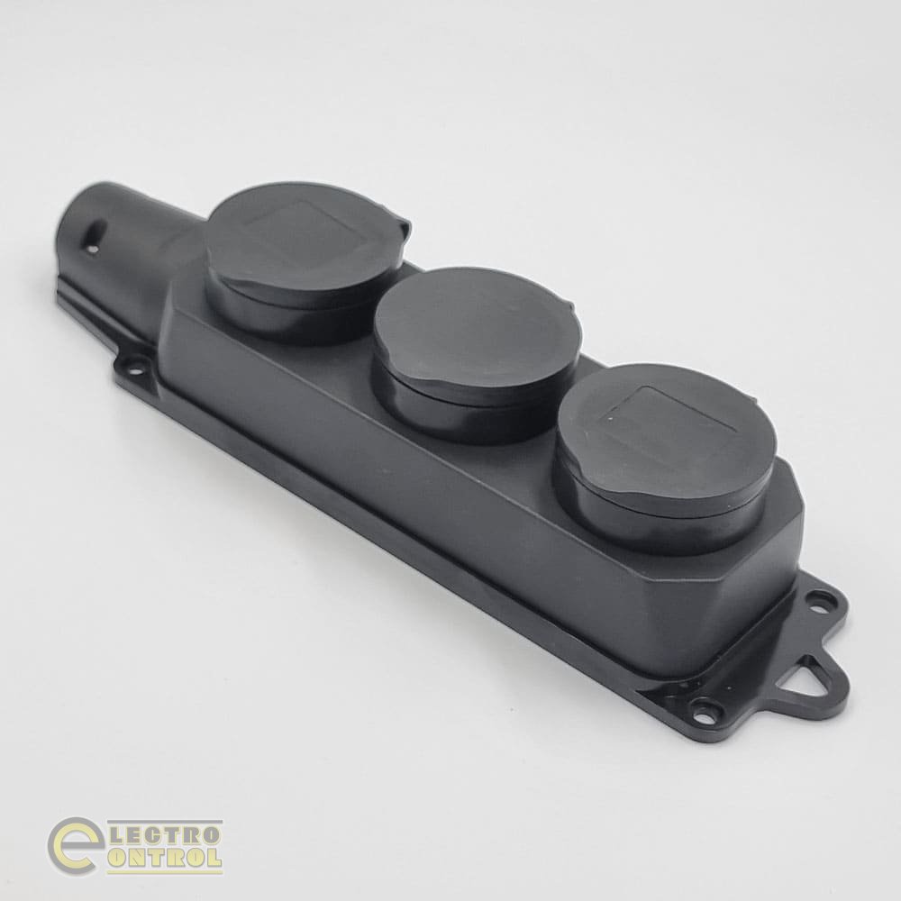 Розетка LEE 703362 каучукова тримісна з захисними кришками 403 2Р+РЕ IP44