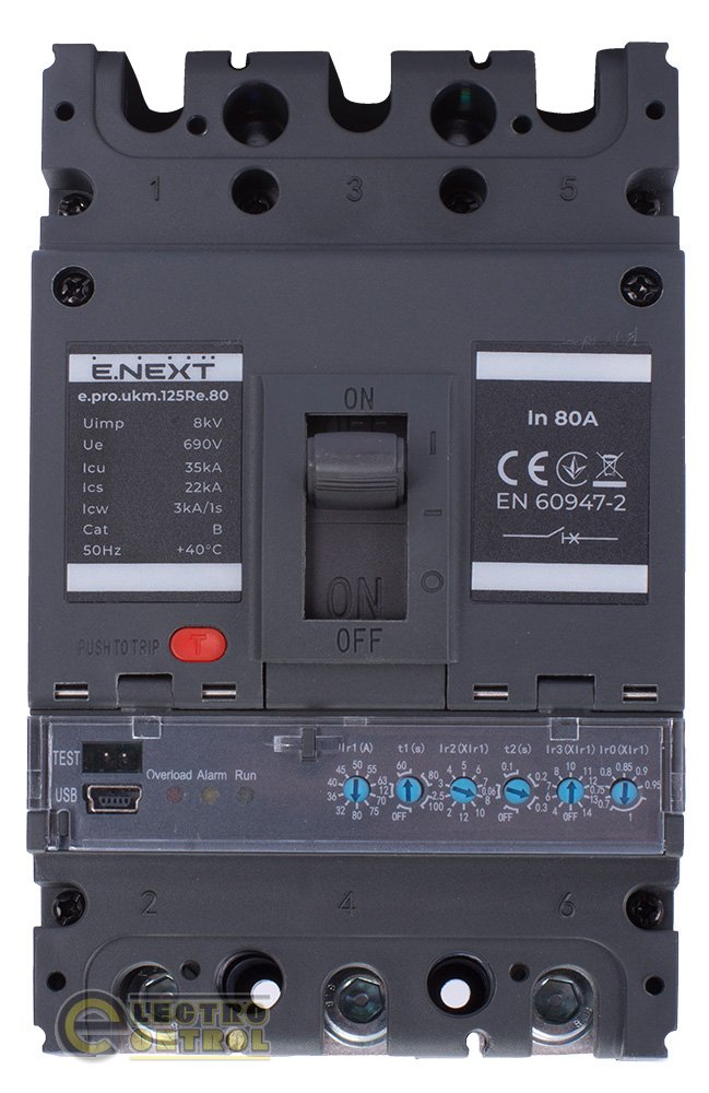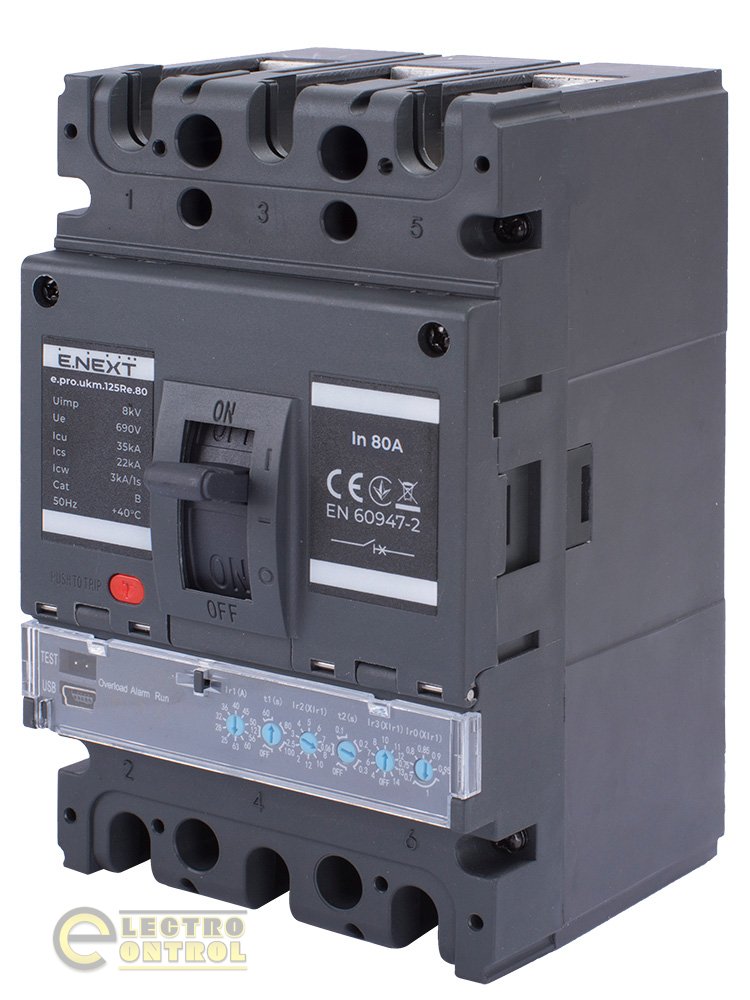 Силовий автоматичний вимикач Enext p087002 e.pro.ukm.125Re.80 з електронним розчіплювачем 3р 80А