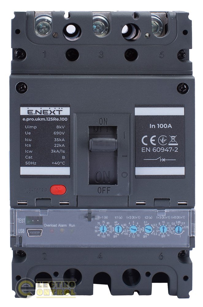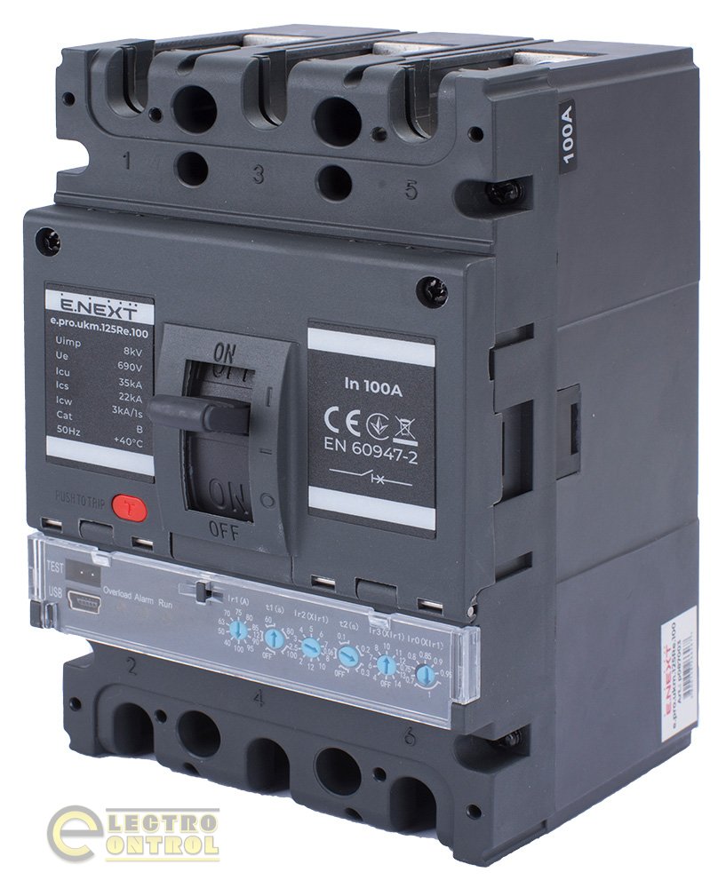 Силовий автоматичний вимикач Enext p087003 e.pro.ukm.125Re.100 з електронним розчіплювачем 3р 100А