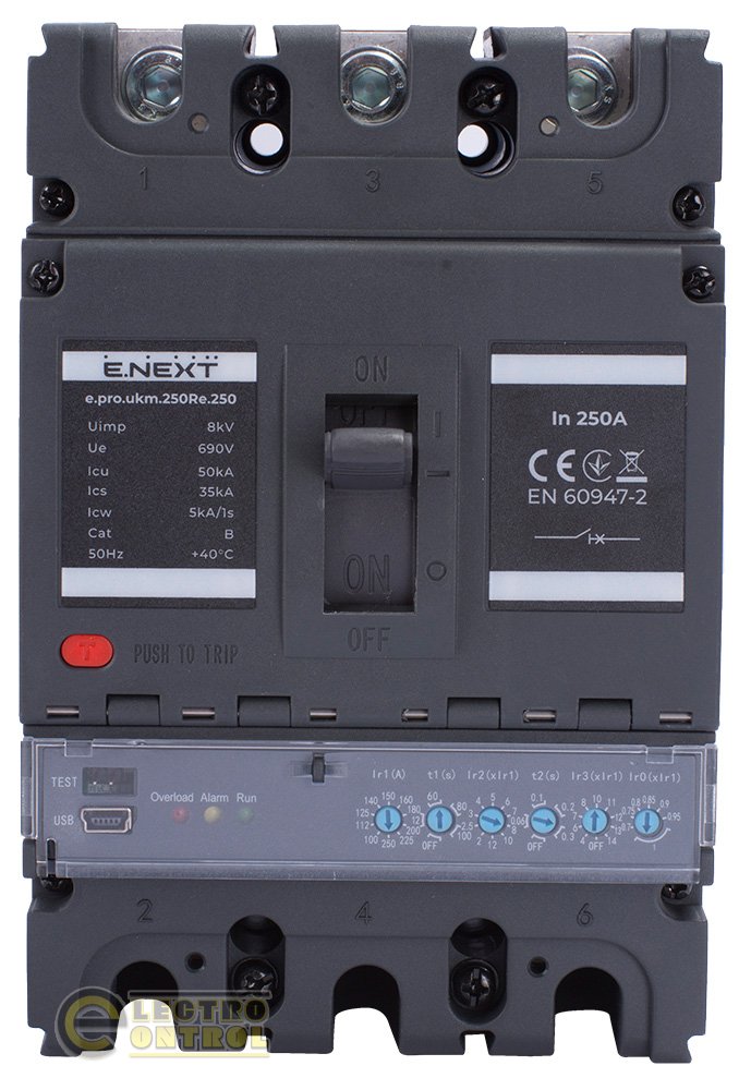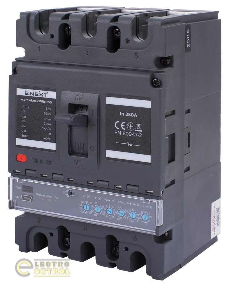 Силовий автоматичний вимикач Enext p087008 e.pro.ukm.250Re.250 з електронним розчіплювачем 3р 250А