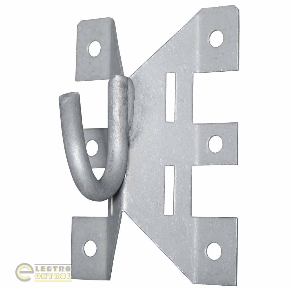- Гак під бандажну стрічку – використовується для кріплення до опор без свердління отворів. Фіксується бандажною стрічкою, у деяких випадках додатково застосовується скоба.
