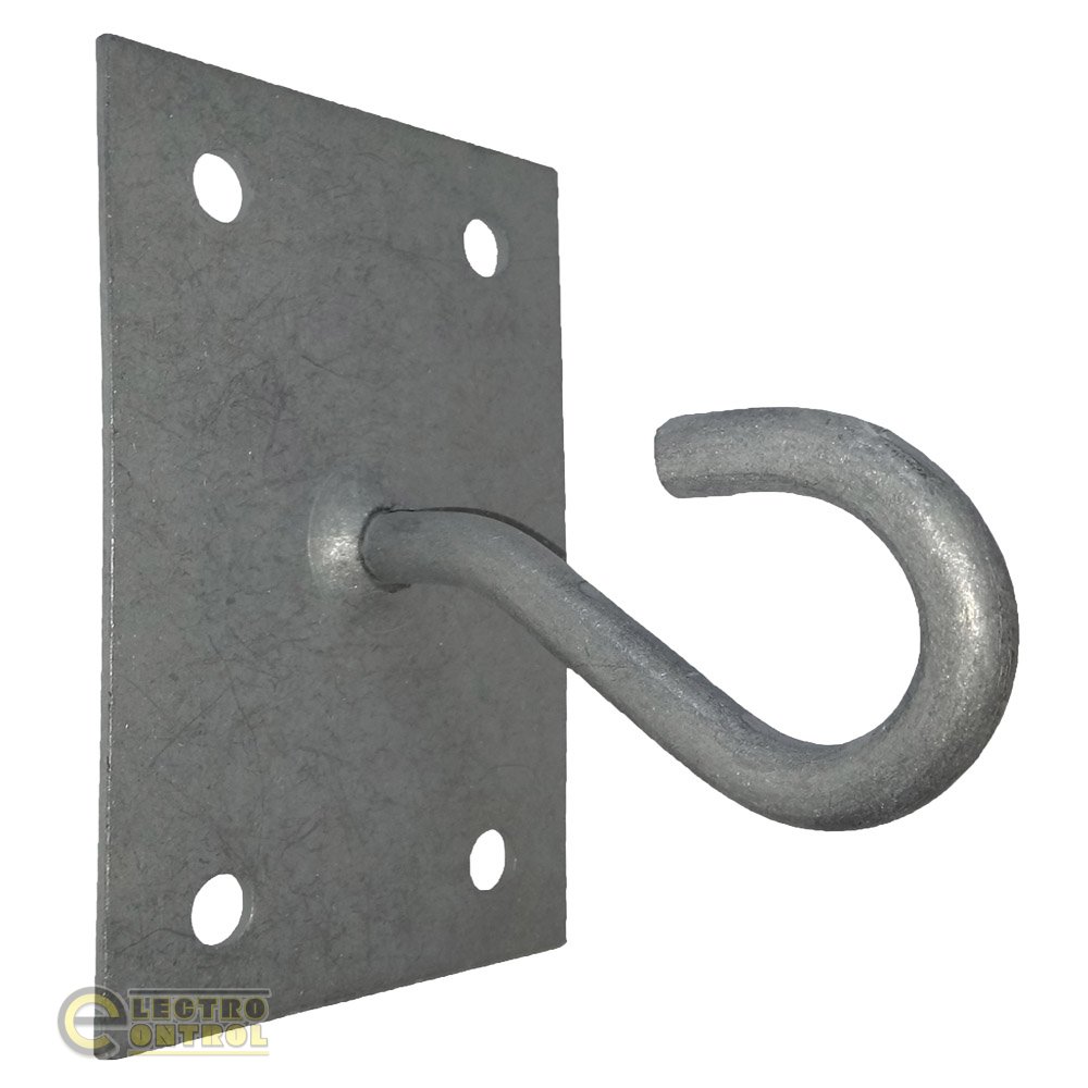 - Гак під бандажну стрічку – використовується для кріплення до опор без свердління отворів. Фіксується бандажною стрічкою, у деяких випадках додатково застосовується скоба.