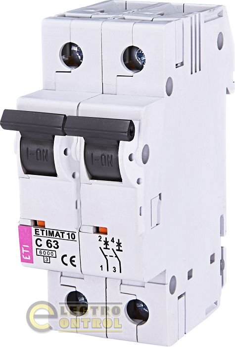 Серія автоматичних вимикачів із функцією захисту від струмів короткого замикання ETIMAT 10 2p C 63А призначена для використання в побутових і комунальних електромережах, а також у розподільних щитах, шафах управління тощо промислових споживачах невеликої потужності.