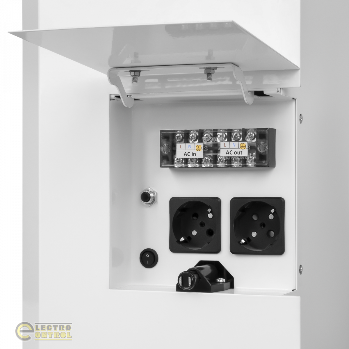 Зручна та безпечна система підключення навантаження та живлення. Всі дроти сховані та захищені металевою кришкою. Це не псує зовнішній вигляд, захищає від попадання вологи та сміття. І, що особливо важливо, запобігає доступу до кабелю дітей та тварин.