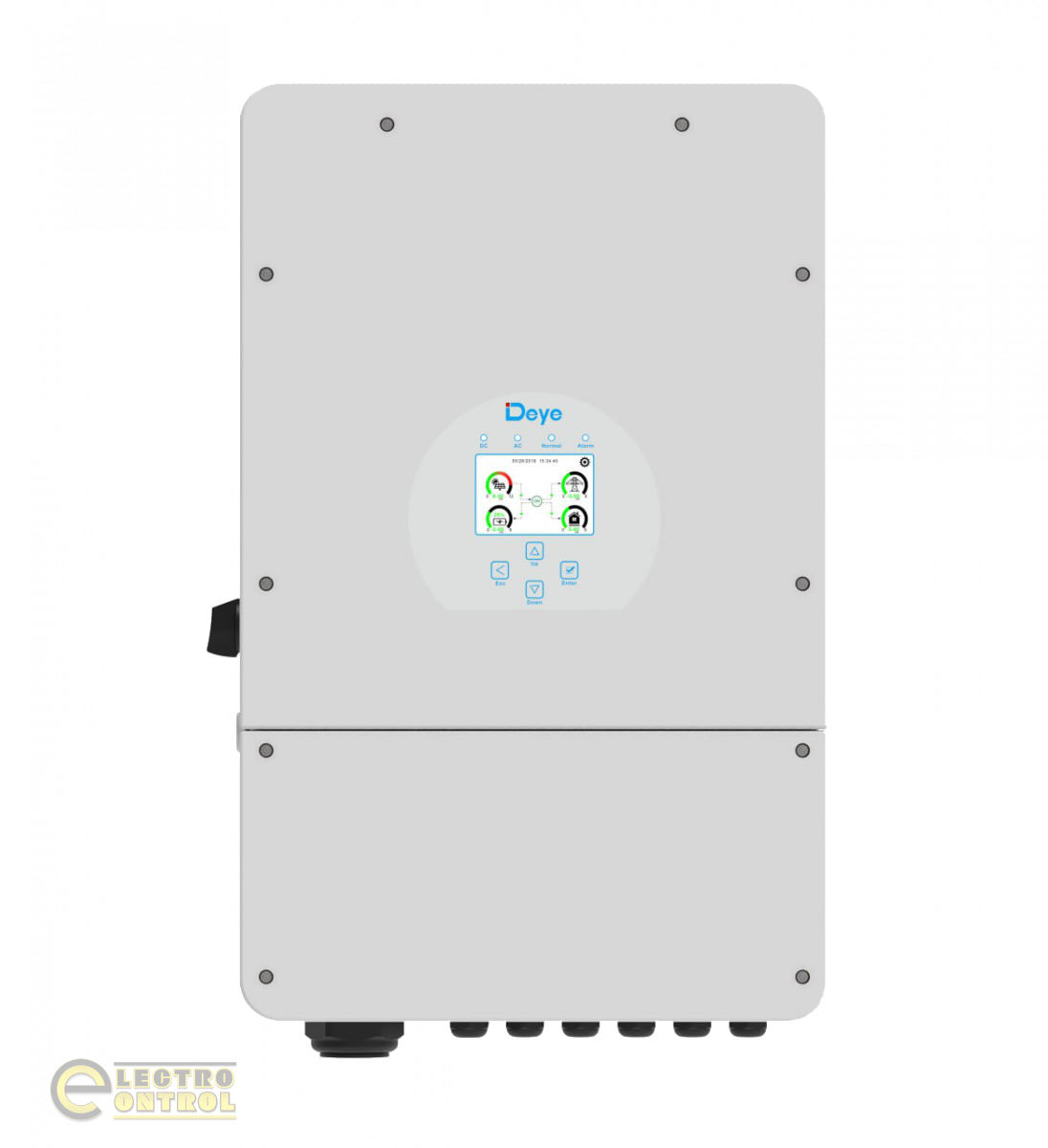 Цей гібридний інвертор для альтернативної енергетики оснащено LCD-дисплеєм із сенсорним керуванням, що спрощує налаштування та управління ним. За допомогою комплектного WiFi модуля можна здійснювати моніторинг роботи інвертора і сонячної електростанції через хмарний сервіс Deye, включно з відстеженням генерації сонячних панелей, споживання електроенергії, стану акумулятора і роботи генератора.