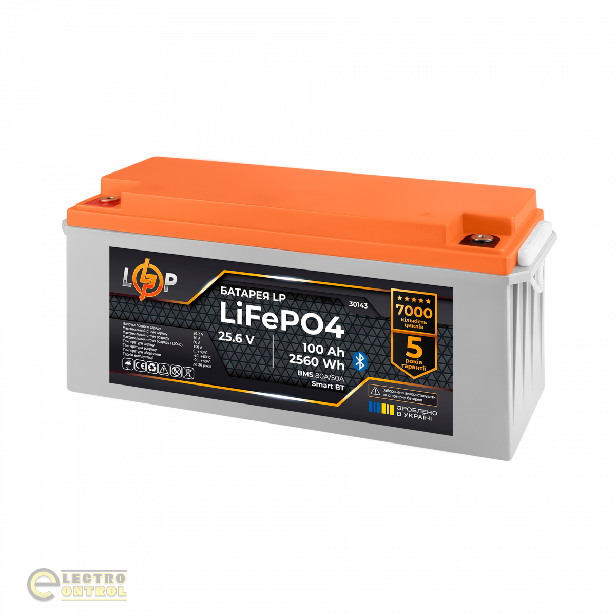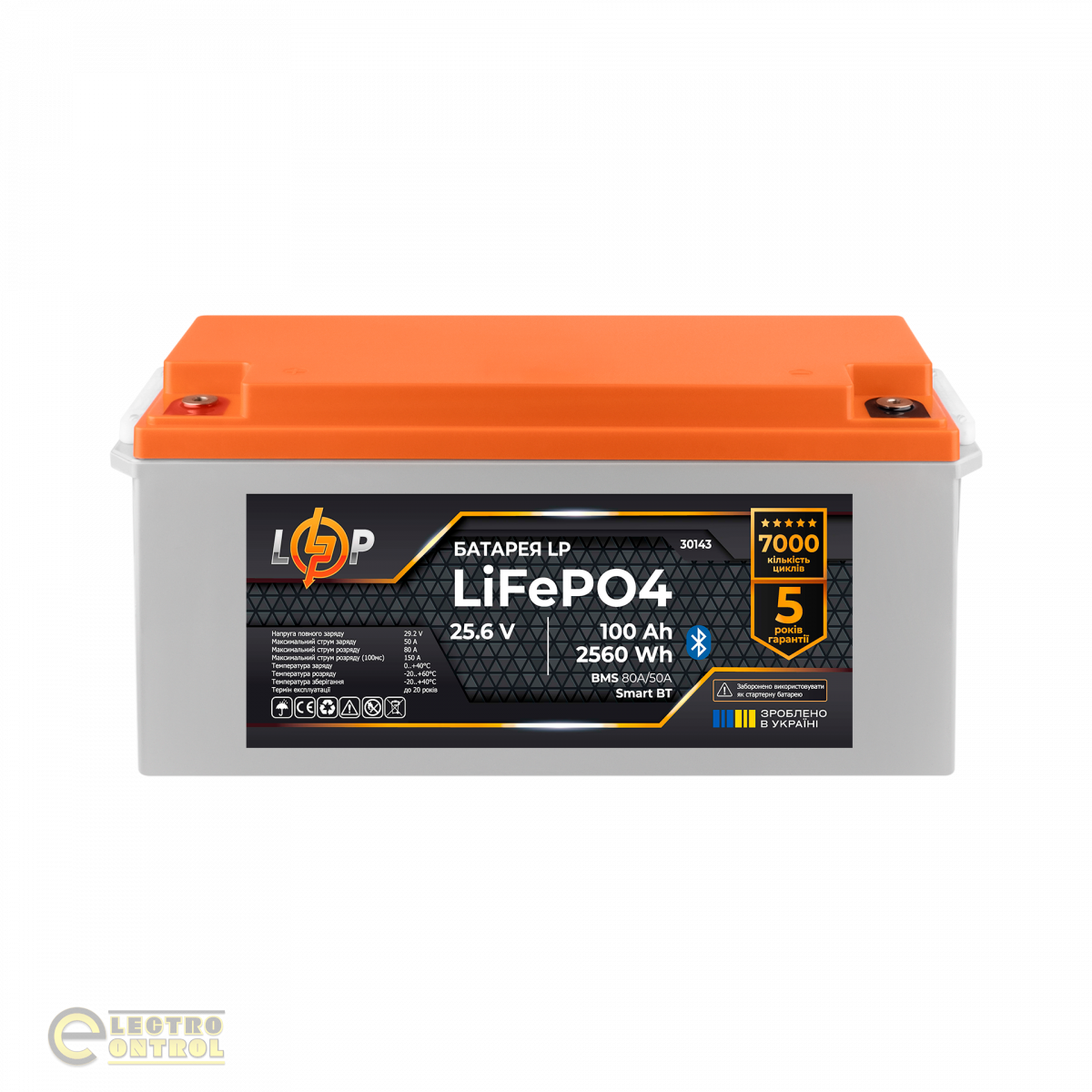 Акумулятор LogicPower LiFePO4 25,6V-100Ah (2560Wh) (BMS 80А/50) пластик Smart BT