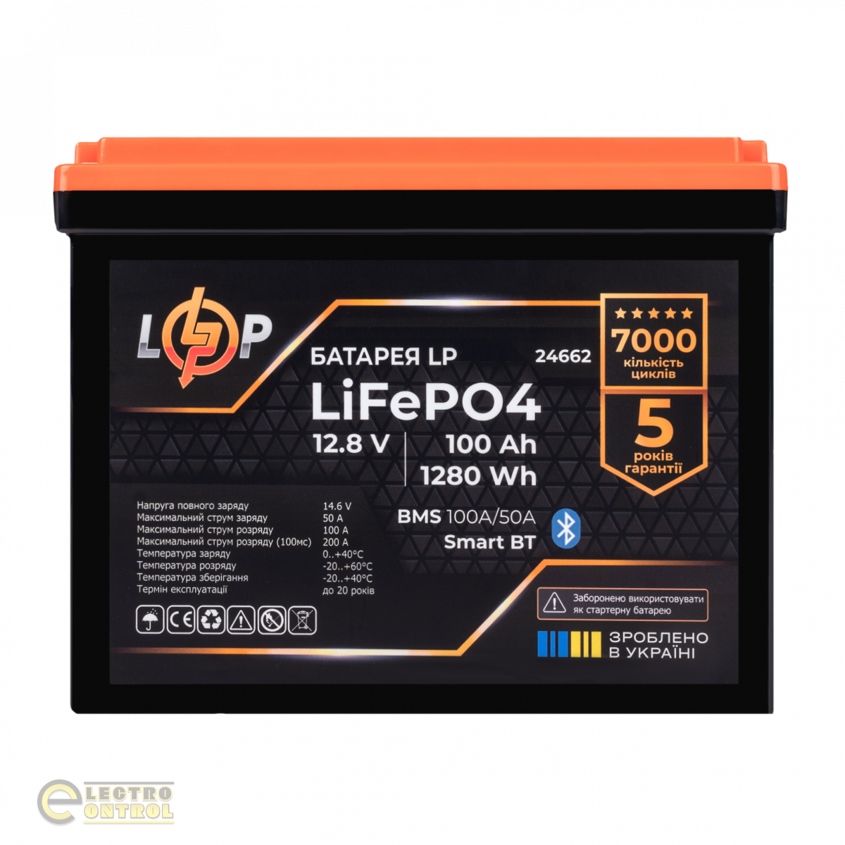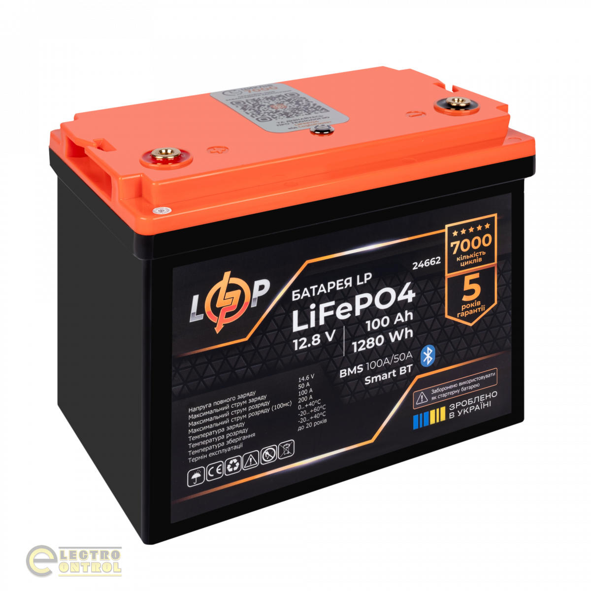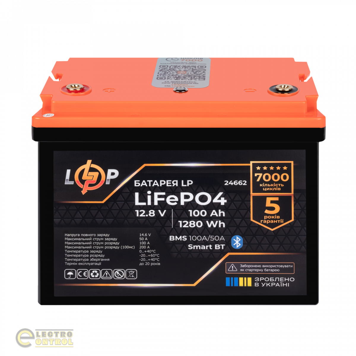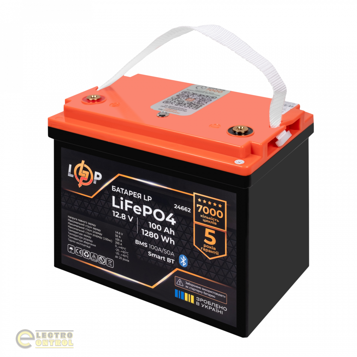 Акумулятор LogicPower LiFePO4 12,8V-100Ah (1280Wh) (BMS 100A/50А) пластик Smart BT